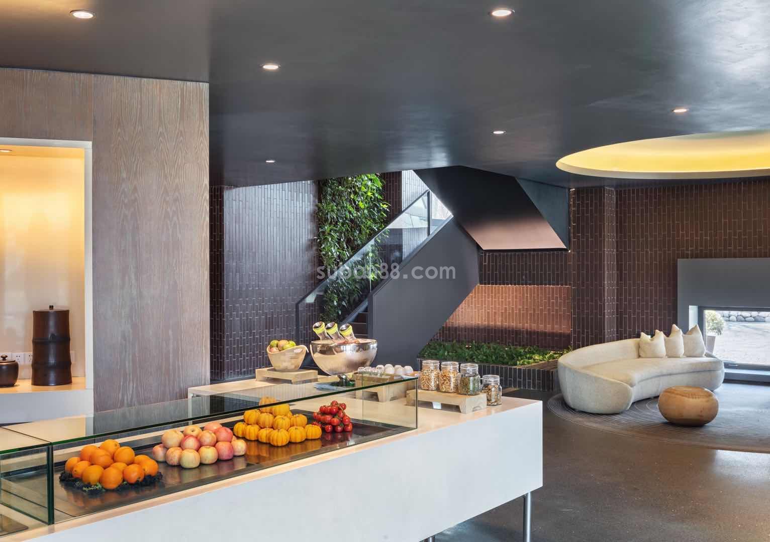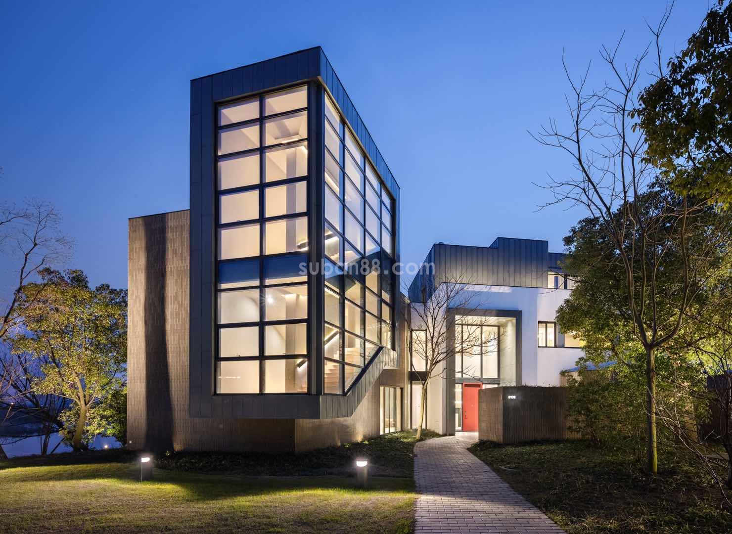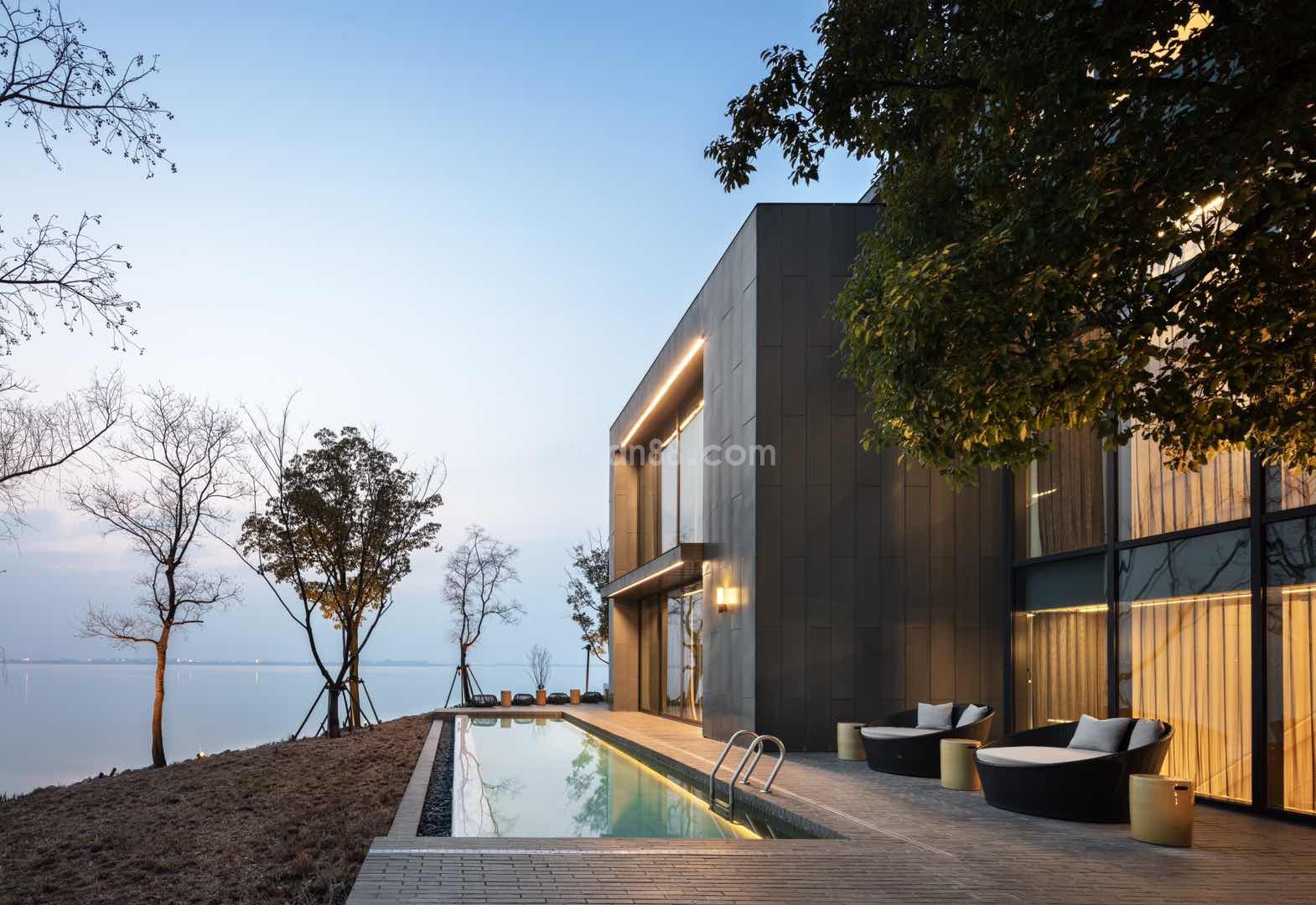 色系搭配:整體建筑黑白灰色系搭配,讓人更加放松而非拘謹,內部木皮貼面,大面積采用美國進口選料,德國霍曼的大門更顯業主氣度與品位