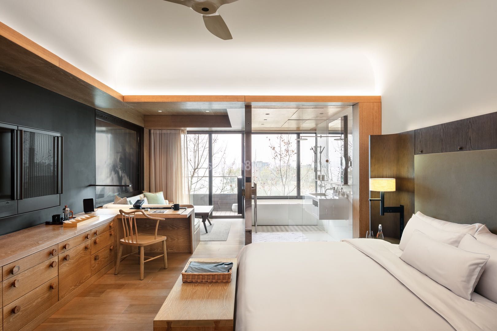 玻璃:打磨雙銀低輻射鍍膜中空玻璃有效保證保溫、遮陽等性能的同時,還提供充足的可見光透過率,確保室內自然光照的效果